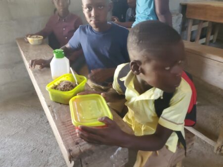 It was with joy that they noticed Rosiana and Mrs. Yvene were present, but what mattered most was the smoke rising from the kitchen, a sign that lunch was being prepared for them. Through God’s goodness and mercy, this school continues to provide both the bread of instruction and daily bread, while He blesses our supporters in every way.