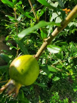 Personally, it’s the first time I’ve ever seen what a pomegranate looks like. We were only able to buy one tree because even the people who grow and sell this tree, didn’t have many available. According to the seller, it is a very difficult fruit tree to cultivate.